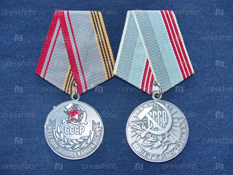 Советские медали "Ветеран Вооруженный сил" и "Ветеран труда". Ими награждались военнослужащие безупречно прослужившие в Вооруженных Силах СССР 25 и более календарных лет или работники за добросовестный труд в народном хозяйстве