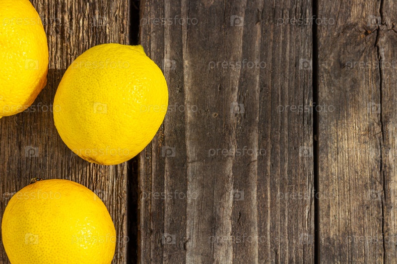 Лимон на деревянной доске, деревянный стол, вид сверху