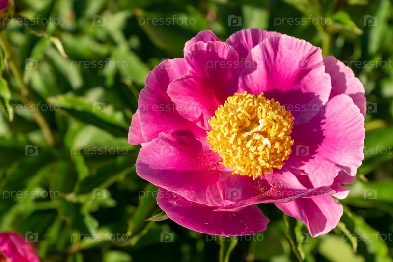 Розовые цветущие пионы в саду