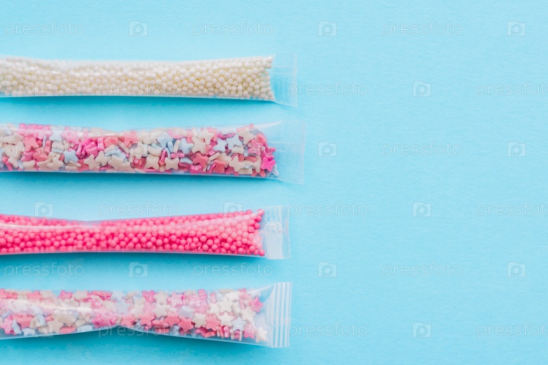 Набор сахарных посыпок белого, розового и голубого цветов в форме звезд, шариков и бабочек. Украшение для тортов и выпечки