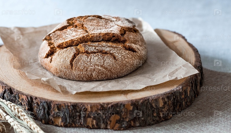 Свежий вкусный хлеб крупным планом. Свежеиспеченный хлеб на закваске с золотой корочкой на деревянной доске. Контекст пекарни с вкусным хлебом. Кондитерские изделия