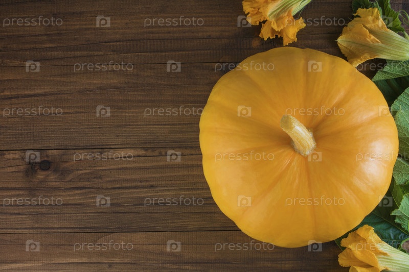 Тыква на деревянном фоне. Осенний урожай или концепция хэллоуина. Копировать пространство