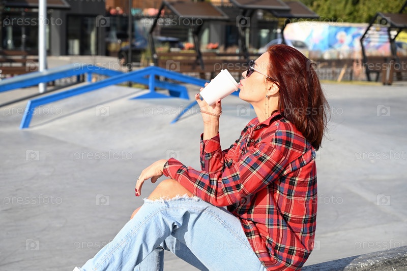 Уверенная в себе молодая женщина ходит по улицам города, женщина улыбается и наслаждается жизнью