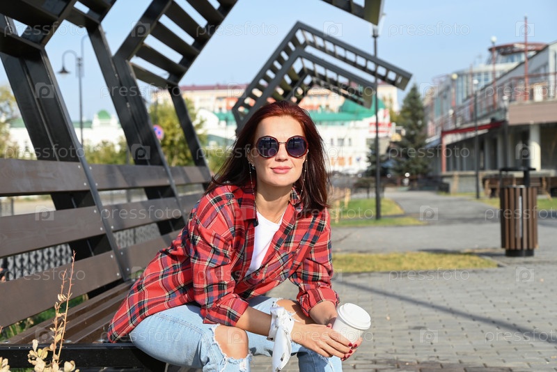 Уверенная в себе молодая женщина ходит по улицам города, женщина улыбается и наслаждается жизнью