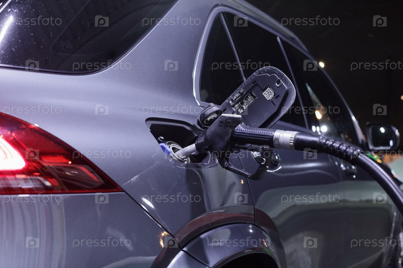 Дизельный пистолет АЗС вставленный в бак автомобиля