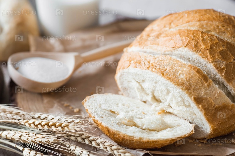 Свежий вкусный хлеб крупным планом и соль. Свежеиспеченный хлеб на закваске с золотой корочкой на деревянной доске. Контекст пекарни с вкусным хлебом. Кондитерские изделия