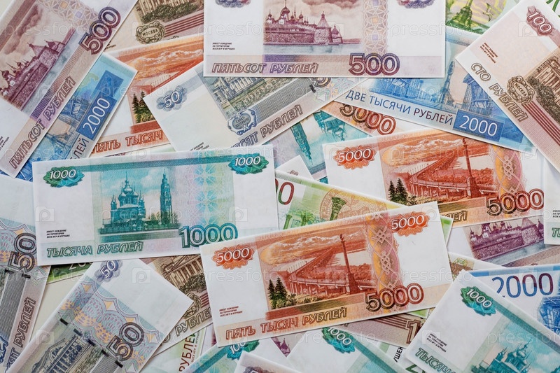 Российские деньги разного номинала. Фон денег