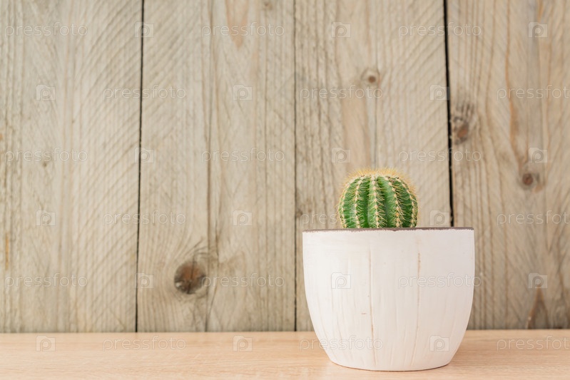 Кактус Echinopsis Eirieza в белом деревенском керамическом горшке на деревянном фоне Домашнее садоводство для начинающих