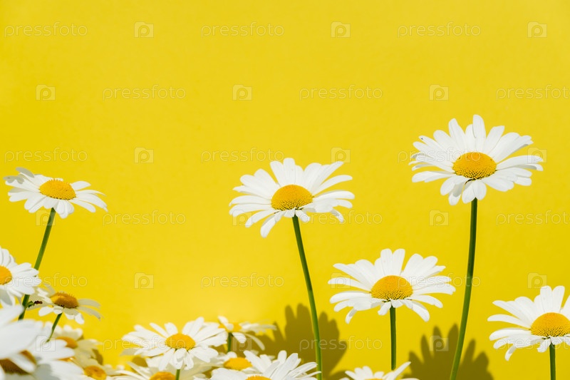 Цветы ромашки на ярко-желтом фоне, скопируйте место для текста