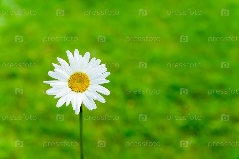 Один цветущий цветок ромашки на зеленом фоне природы. Летняя концепция с копией пространства
