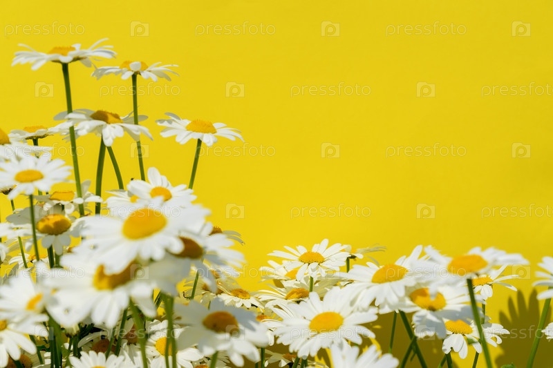 Цветы ромашки на ярко-желтом фоне, скопируйте место для текста