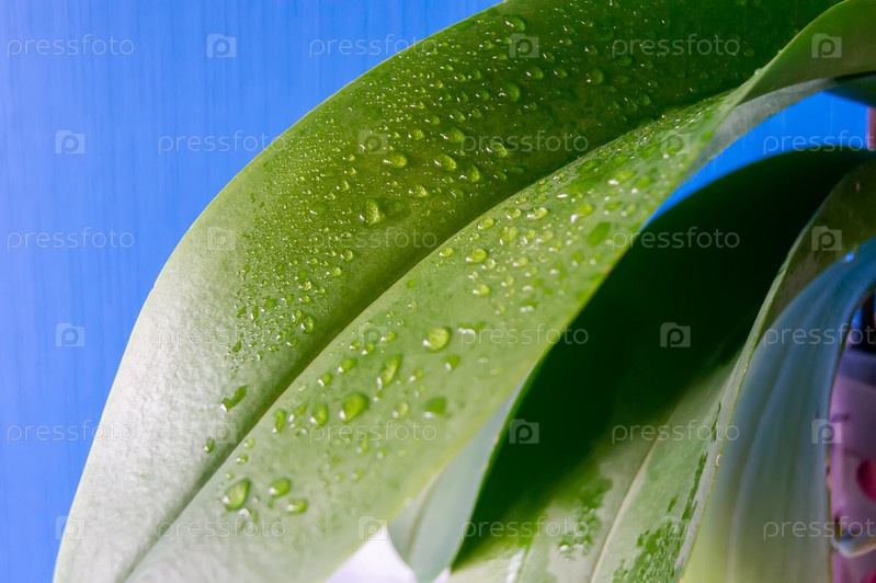 Крупный план листьев цветов орхидеи после опрыскивания. Домашнее садоводство