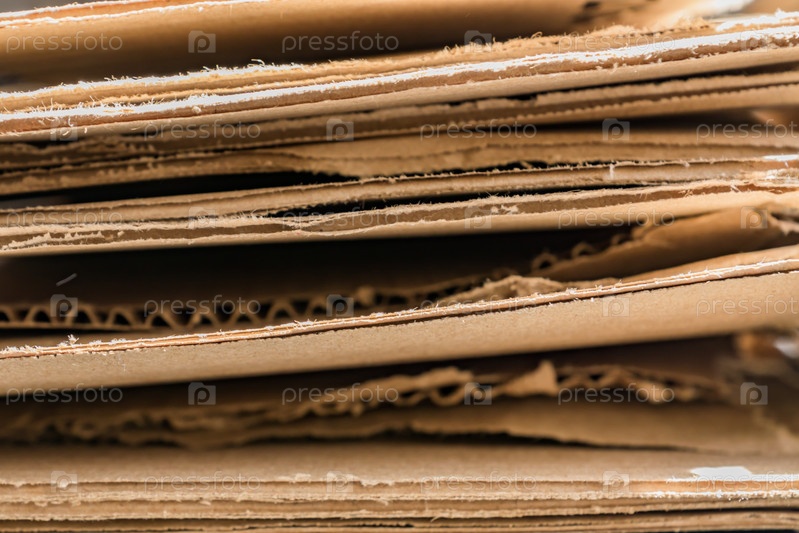 Куча многоразового картона. Фон вторичной переработки бумаги
