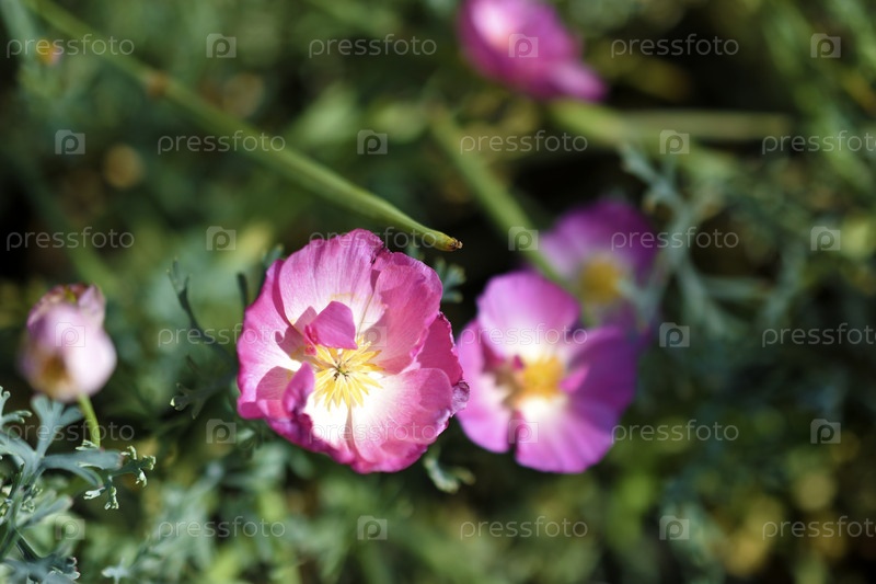 Желто-красные цветы escholtia papaveraceae в крупном плане