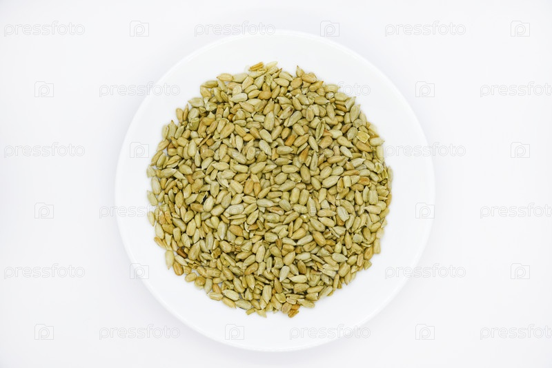 Очищенные семечки подсолнуха на белой тарелке. Вкусные семечки