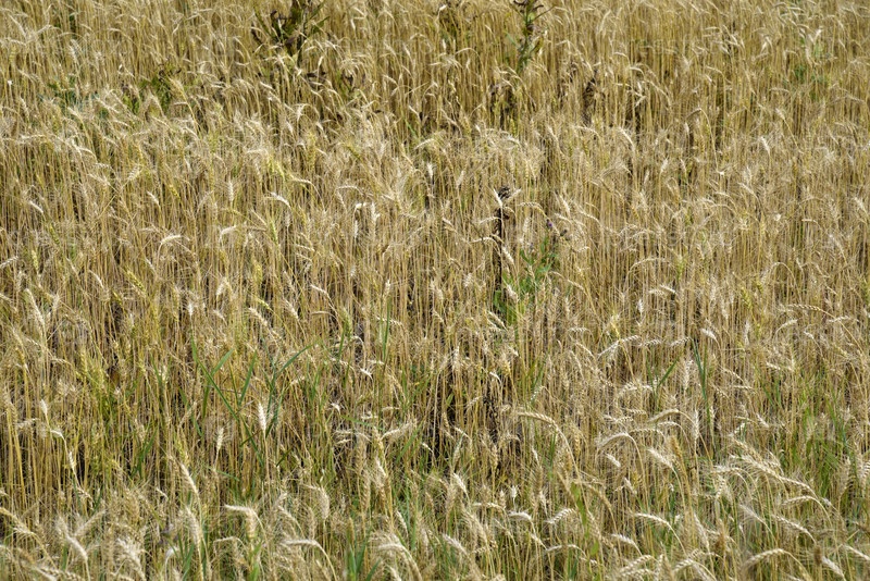 Поле пшеницы в солнечный день. Колосья пшеницы крупным планом. Сельскохозяйственное поле с зерновыми культурами