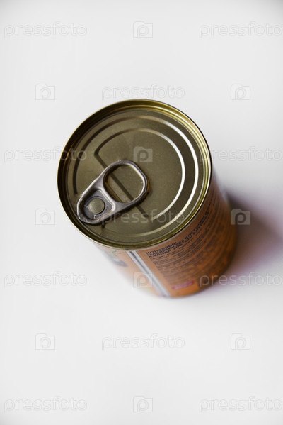 Крышка консервной банки на белом фоне. Жестяная банка