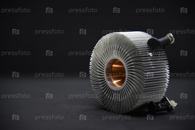 Алюминиевый радиатор для охлаждения процессора компьютера на черном фоне. Охлаждение процессора