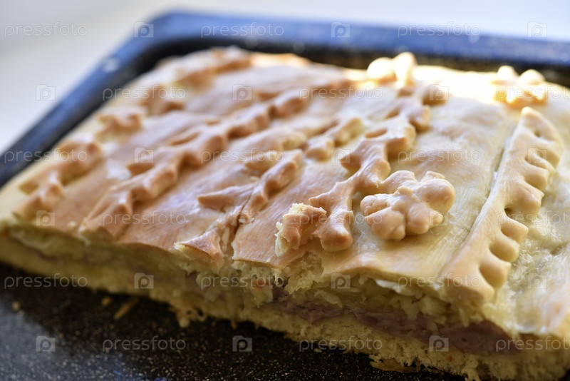 Красивый мясной пирог из теста крупным планом