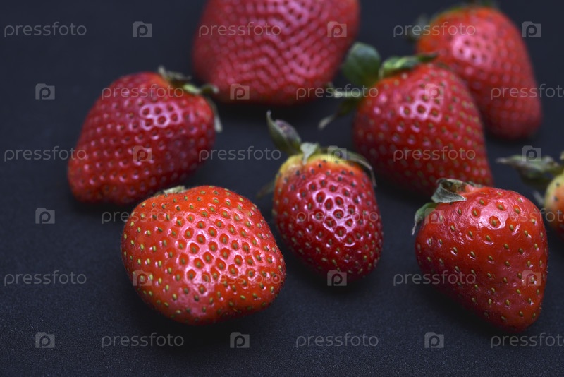 Вкусная большая красная клубника на черном фоне. Красная ягода. Берия Виктория