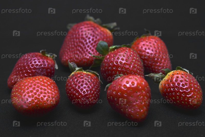Вкусная большая красная клубника на черном фоне. Красная ягода. Берия Виктория