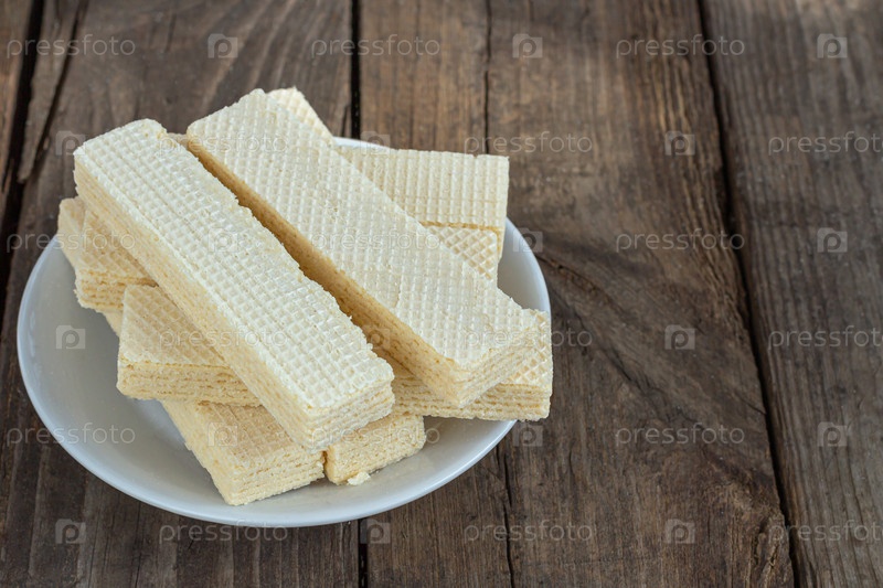 Вкусные русские вафли на деревянном фоне в деревенском стиле, крупным планом