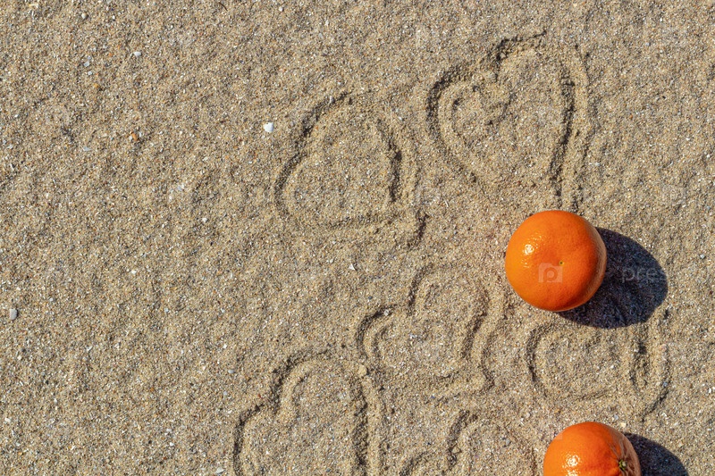 Сердце нарисовано на песке. Фон пляжа. Вид сверху, фон для дизайна