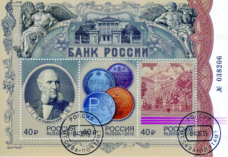 Россия, около 2015: Почтовый блок посвящен Банку России. Филателия
