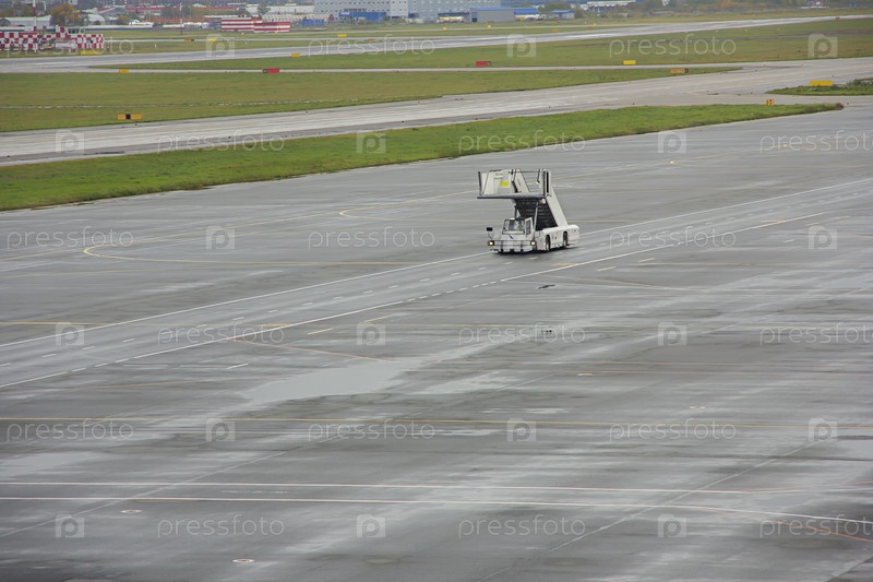 Передвижной пандус аэропорта. Автомобильные пандусы едут по аэродрому