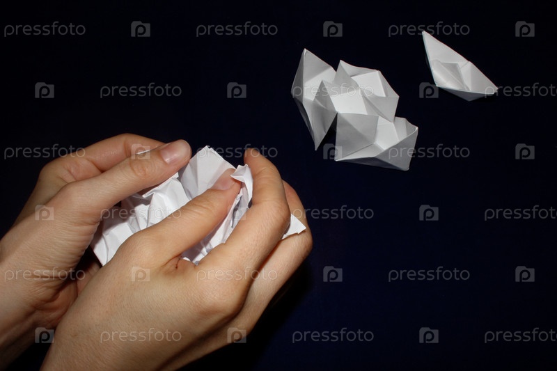 Культурный прогресс, развитие, концепция улучшения с белой бумажной лодкой оригами и пароходом на темном фоне и женскими руками, делающими следующий бумажный объект с улучшенным дизайном