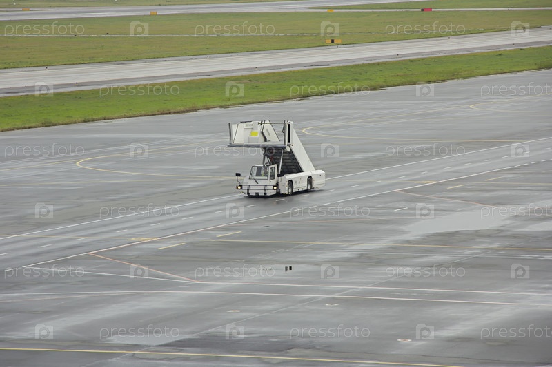 Передвижной пандус аэропорта. Автомобильные пандусы едут по аэродрому