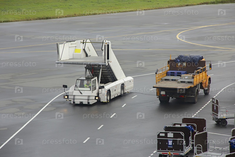 Передвижной пандус аэропорта. Автомобильные пандусы едут по аэродрому