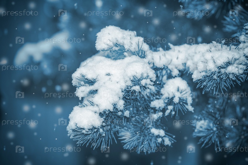 С Новым годом и Рождеством фон с заснеженными ветвями ели