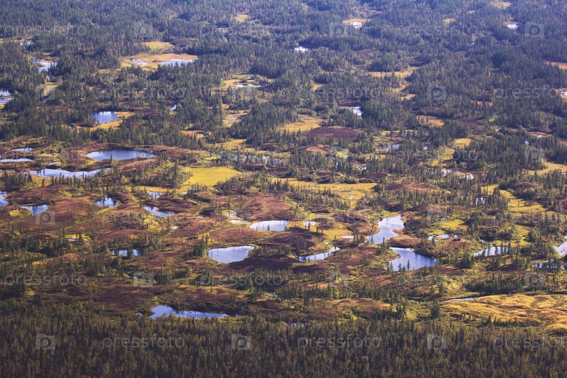 Вид с вершины горы на тундровые озера