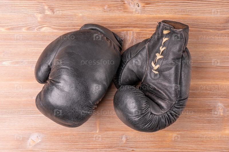 Старые боксерские перчатки из натуральной кожи. Концепция выхода на пенсию