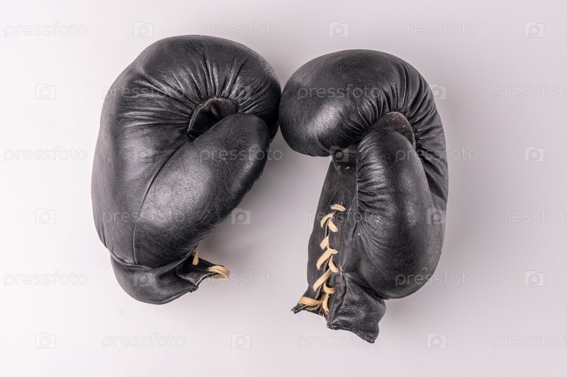 Старые боксерские перчатки из натуральной кожи. Концепция выхода на пенсию