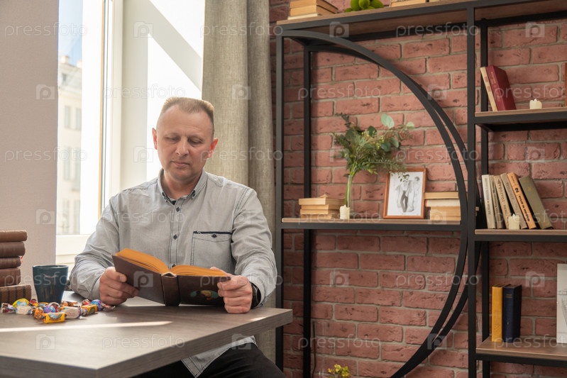 Мужчина, читающий интересную книгу дома