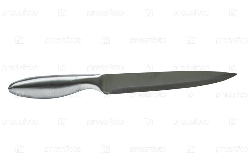 Длинный кухонный нож со стальной ручкой, изолированные на белом фоне. Крупный план
