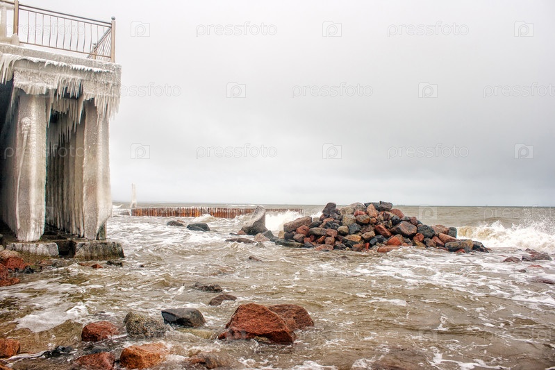 Шторм на море зимой