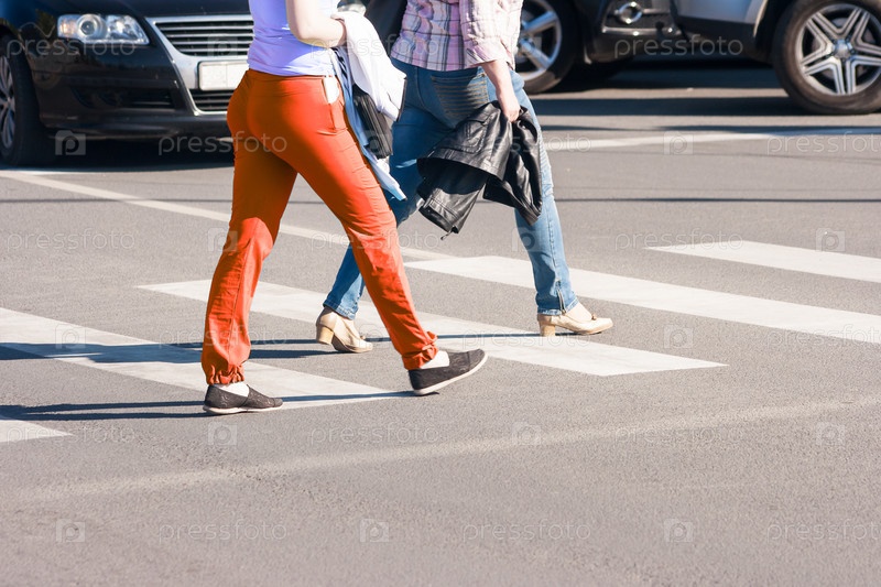 Пешеходы идут по пешеходному переходу