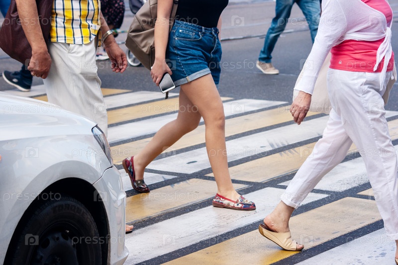 Ноги пешеходов на пешеходном переходе