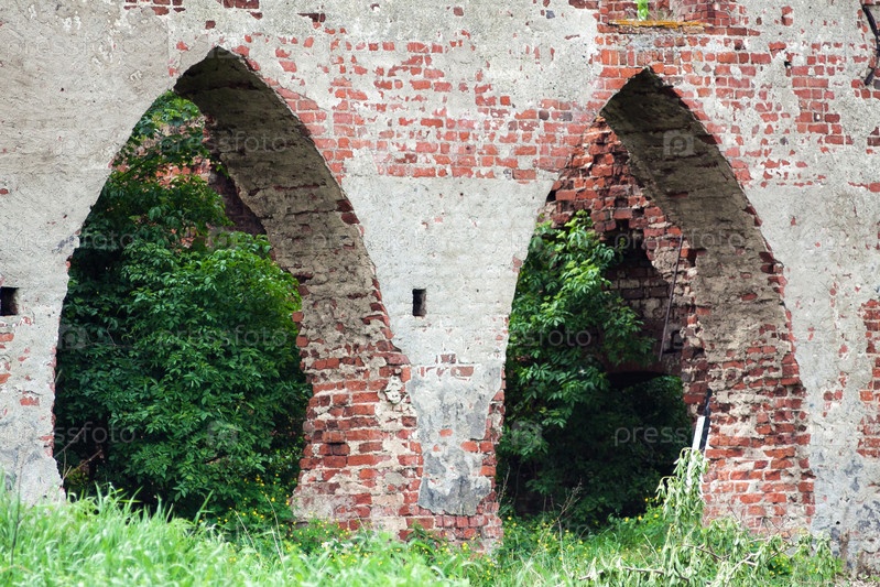 Старая заброшенная кирпичная стена на открытом воздухе