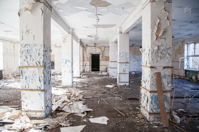 Старый заброшенный разрушенный дом в помещении