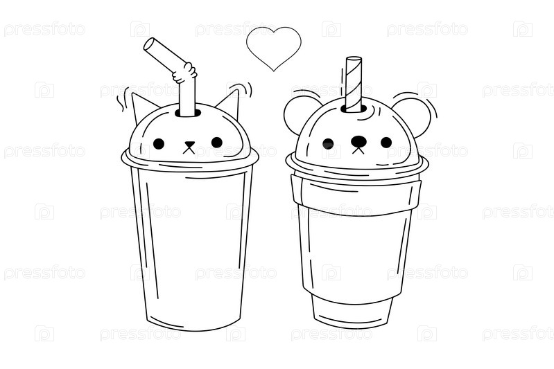Чай, безалкогольные напитки в пластиковых стаканчиках, модный десерт, векторная коллекция