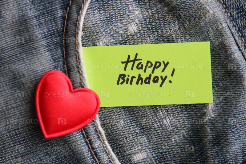 С днем рождения надпись на бумажной бирке в кармане джинсов