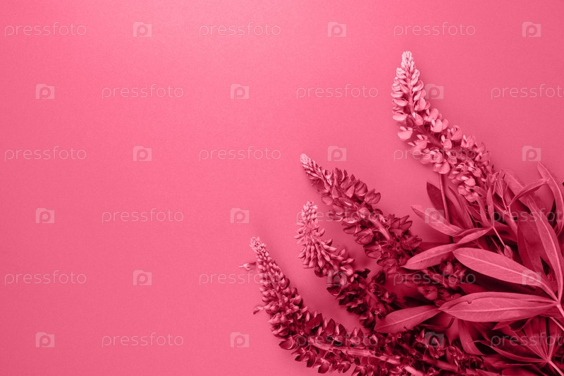 Модный цвет 2023 года: тонизированная бумажная макетка Viva Magenta для текста с декором из люпиновых цветов