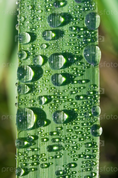 Крупным планом капли росы на травинке