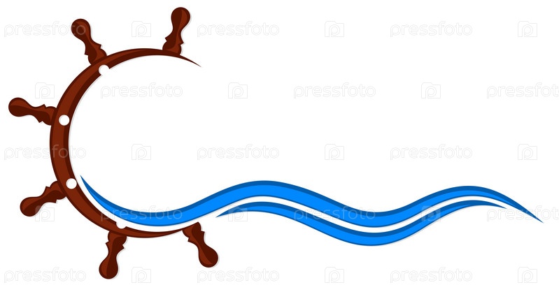 Символ корабельного штурвала с голубой волной