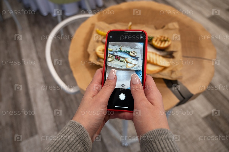 Женщина фотографирует еду