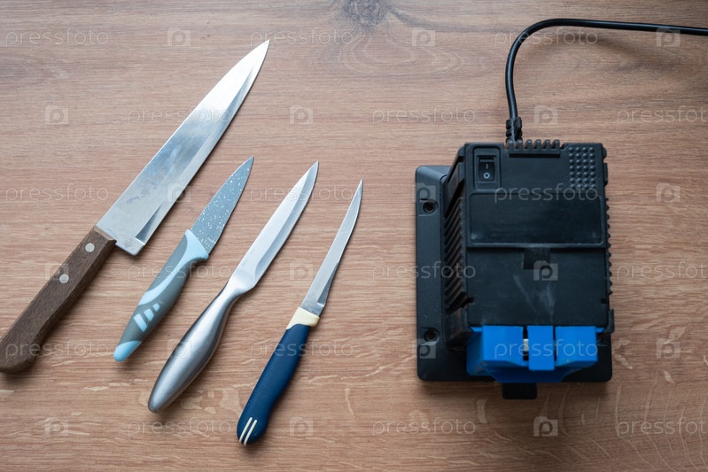 Flatlay лезвие ножа, ножницы, заточки, пыль летает на машине